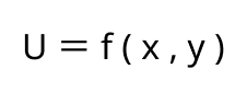 という効用関数で表します。ここで U は満足度の合計(効用)を指し、f は「どんな組み合わせ方をすると、どれだけ幸せになるか」というルール(関数)を意味しています。